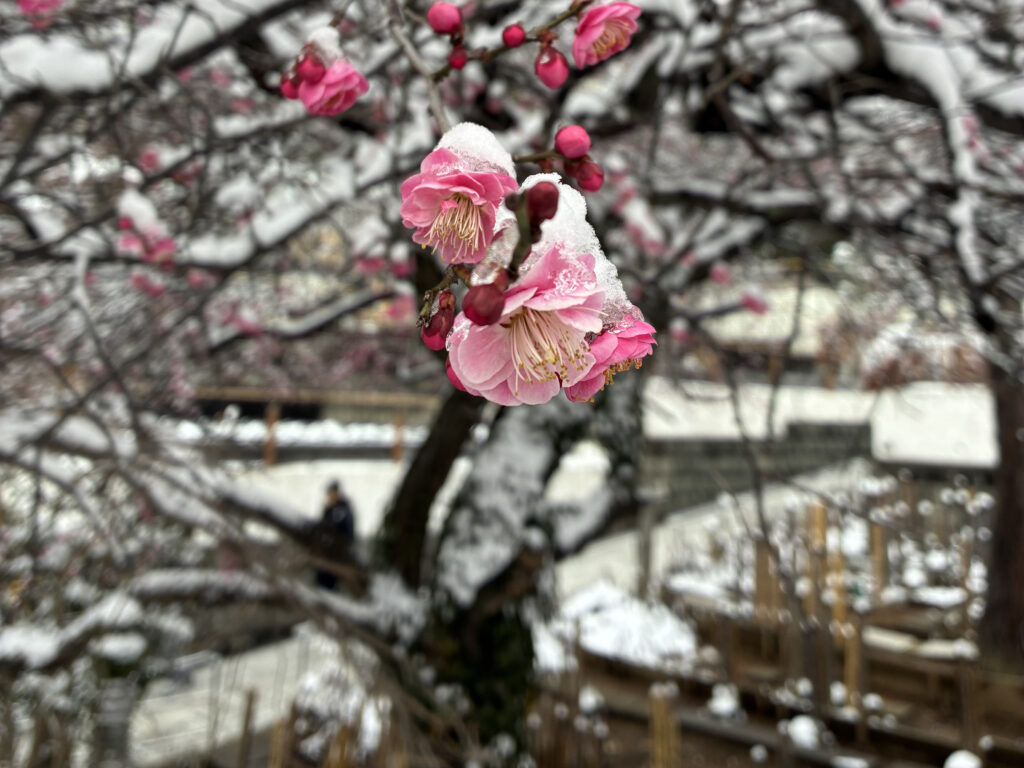 そんな延命地蔵尊のすぐそばにある紅梅が満開になりました!