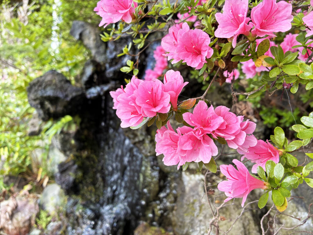 また、「峰の滝」の脇に咲く小さなツツジの花がとても可憐できれいです。