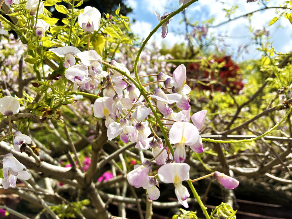 四月に入ってから初夏のような日が続き、早くも藤の花が開花しました。